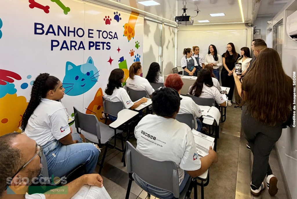 Nesta terça-feira, a presidente do Fundo Social de São Paulo acompanhou as aulas práticas da unidade móvel que chegou à cidade na última segunda-feira. O projeto oferece formação técnica em estética pet, visando a geração imediata de renda.