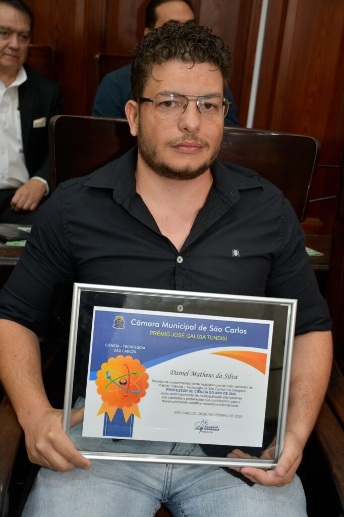 Na noite da última quarta-feira, 26 de novembro, a Câmara Municipal de São Carlos foi palco da cerimônia de entrega do Prêmio Ciência e Tecnologia 2025, instituído pela Lei nº 12.618/2000. O evento reuniu autoridades, acadêmicos e representantes da sociedade, reforçando a vocação da cidade como polo nacional de ciência e inovação.