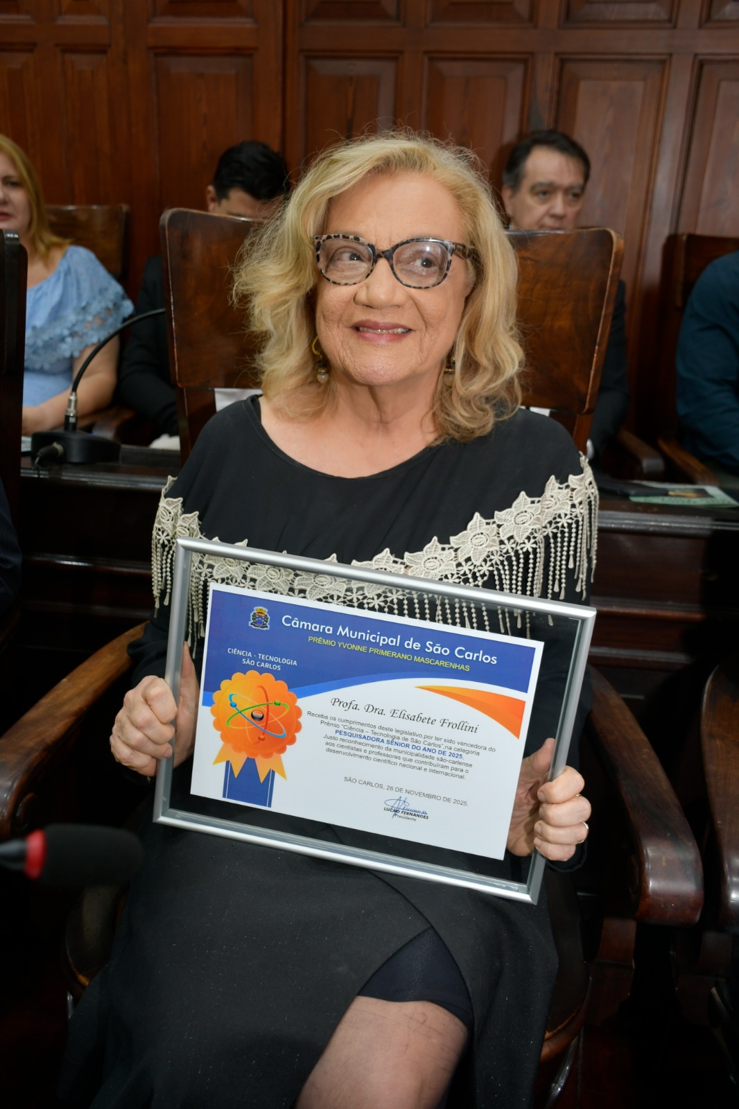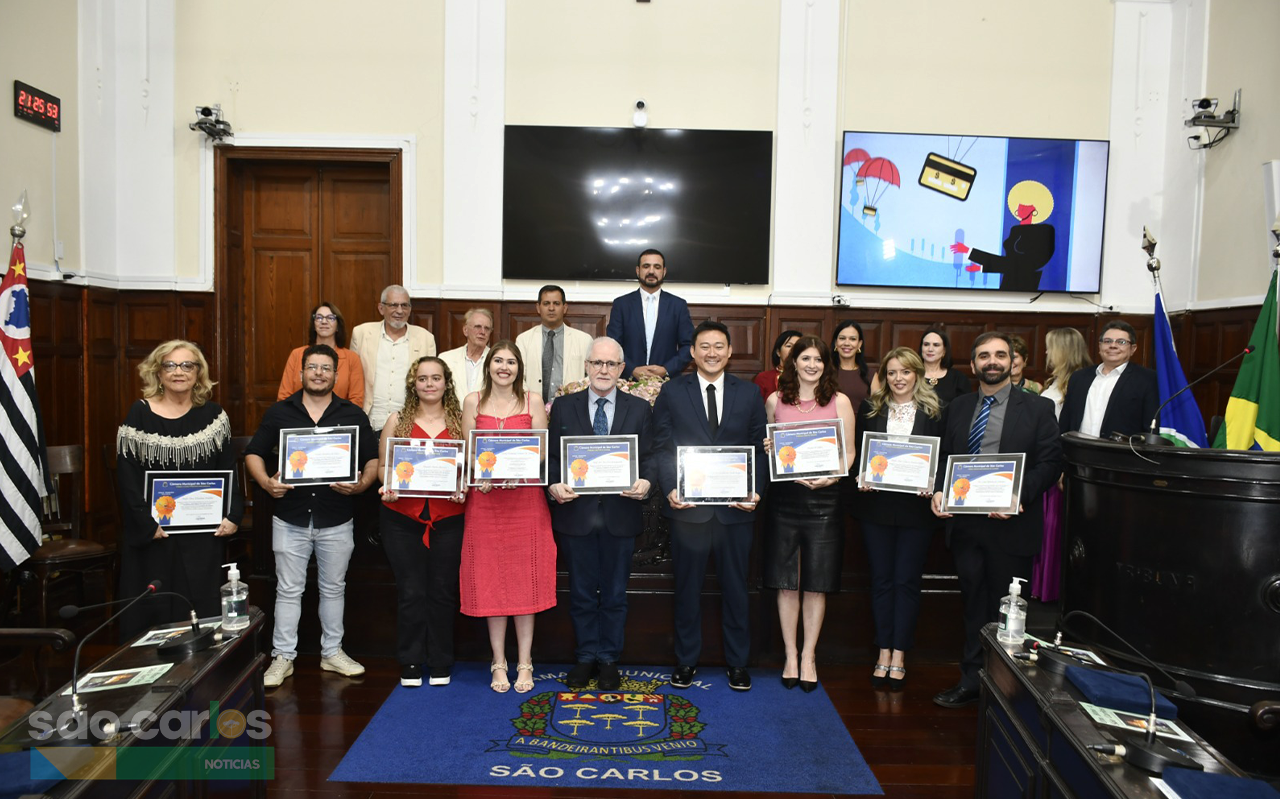 São Carlos celebra entrega do Prêmio Ciência e Tecnologia 2025 na Câmara Municipal.