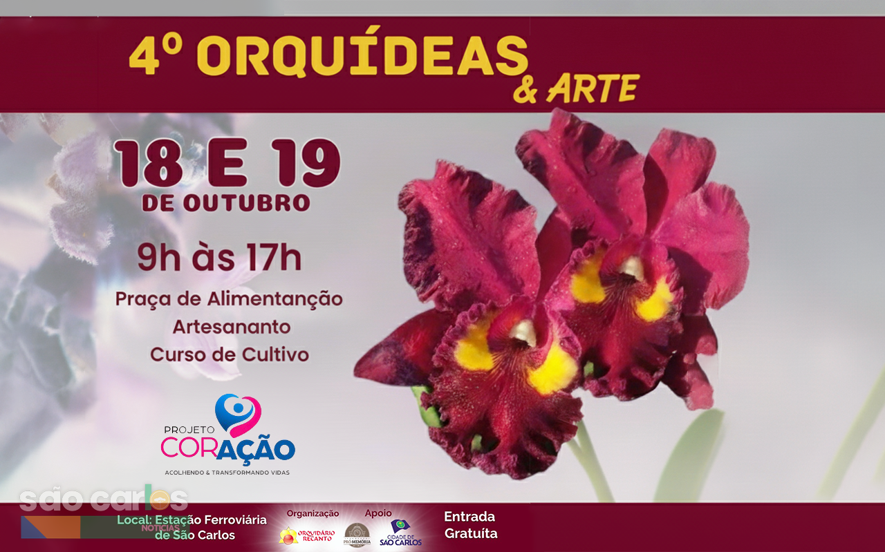 O 4° Orquídeas & Arte São Carlos será realizado nos dias 18 e 19 de outubro com exposição de orquídeas,
