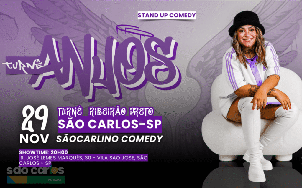 O espetáculo ANJOS desembarca em São Carlos no dia 29 de novembro (sexta-feira), às 19h, no palco do Sãocarlino Comedy – Green Gastrofish, localizado na Rua José Lemes Marques, 30, Vila São José. Com uma proposta que mistura humor e emoção, a apresentação promete ser um dos grandes destaques culturais da cidade neste mês.