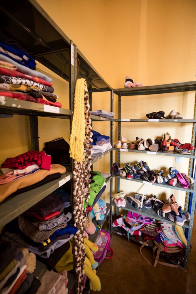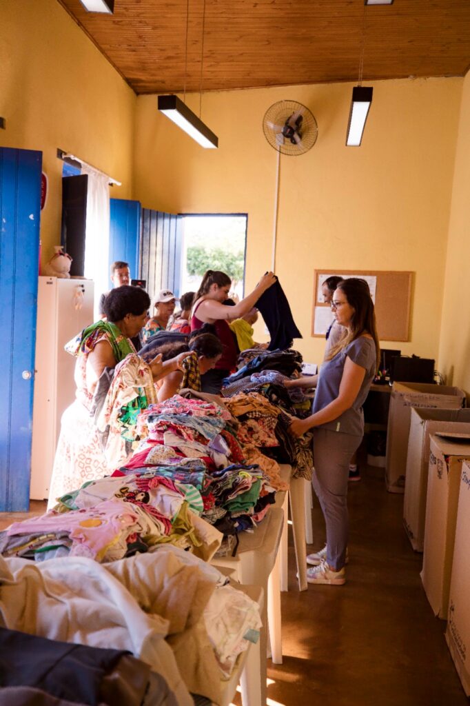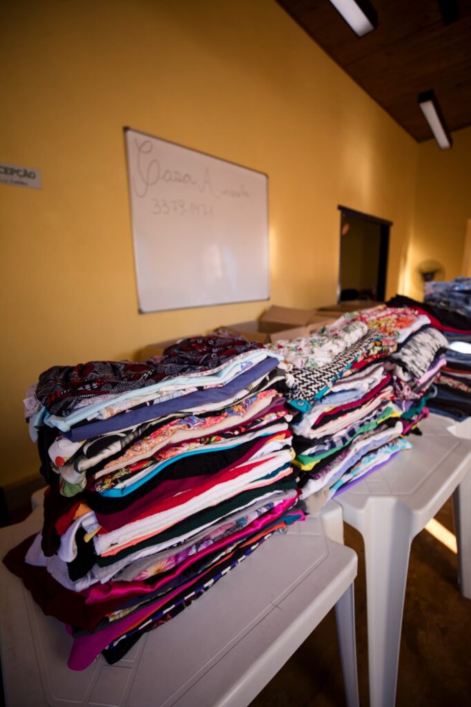 Na Casa Amarela, sede do Fundo Social em Santa Eudóxia, foi montada uma lojinha, um espaço onde as famílias puderam ver e escolher as peças doadas, incluindo calçados, bolsas e roupas de cama, mesa e banho.