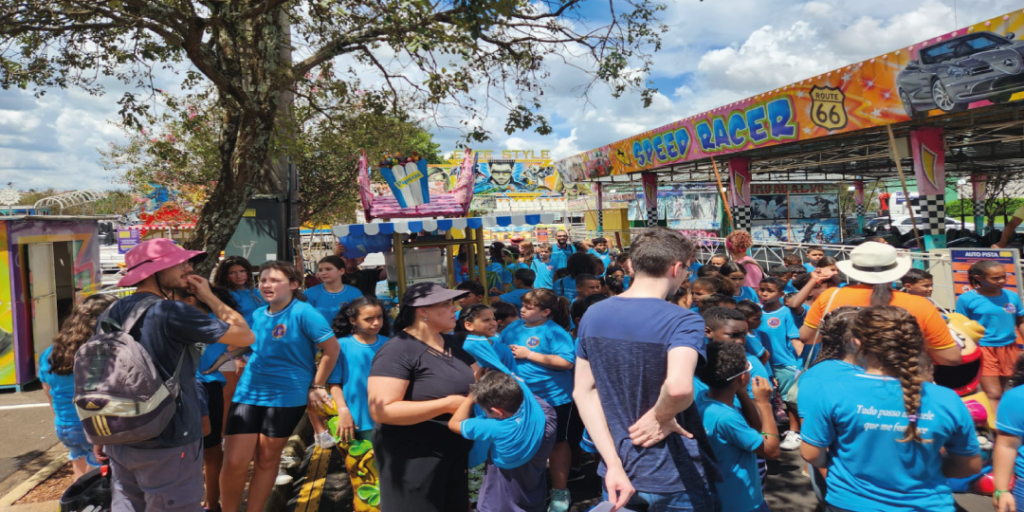Nesta quarta-feira (12/02), foi a vez das crianças que frequentam a Nave Sala da Terra, a Associação Proara e o Nosso Lar. Ao todo, 225 alunos se divertiram em todos os brinquedos do Moreti Parque.
