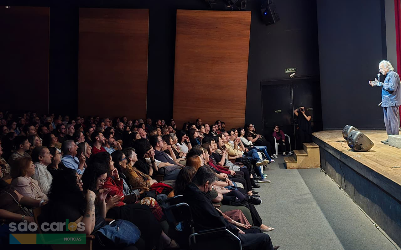 João Carlos Martins emociona público em concerto no Teatro Municipal de São Carlos, realizado na noite de sábado, 18 de outubro de 2025. Mais de 400 pessoas lotaram o Teatro Municipal “Dr. Alderico Vieira Perdigão” para prestigiar a Temporada de Concertos 2025, com a renomada orquestra Bachiana Filarmônica SESI-SP sob regência do maestro que é símbolo de superação e paixão pela música.
