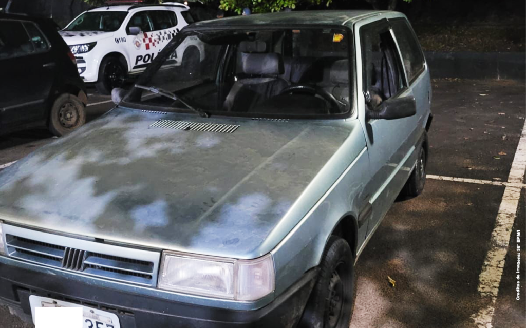 Durante o patrulhamento, os policiais se depararam com um veículo Fiat Uno, conduzido por Vítor Miranda Thomáz. Após abordagem, foi constatado que o carro havia sido furtado em Araraquara no dia 27/12/2026.