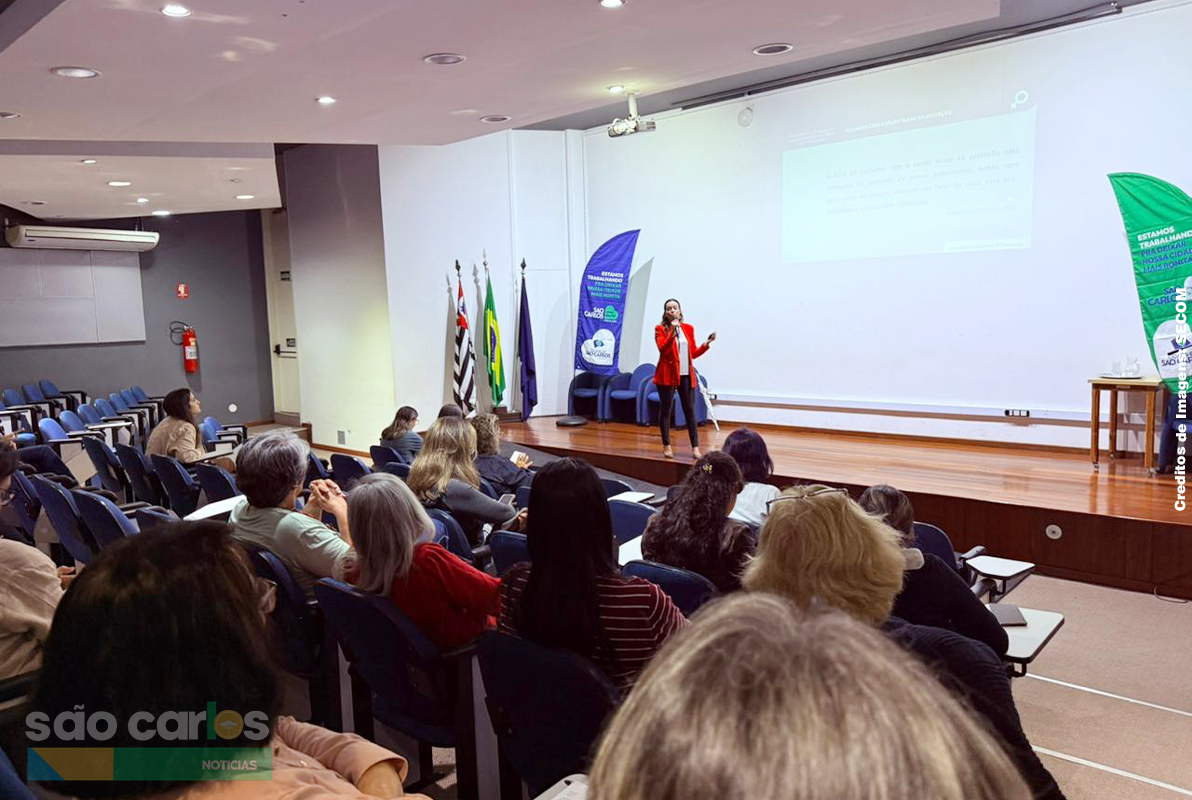 A atividade de formação ocorreu no auditório do Paço Municipal, localizado na Rua Episcopal, no Centro de São Carlos, reunindo equipes que atuam em diversas unidades de saúde da cidade.