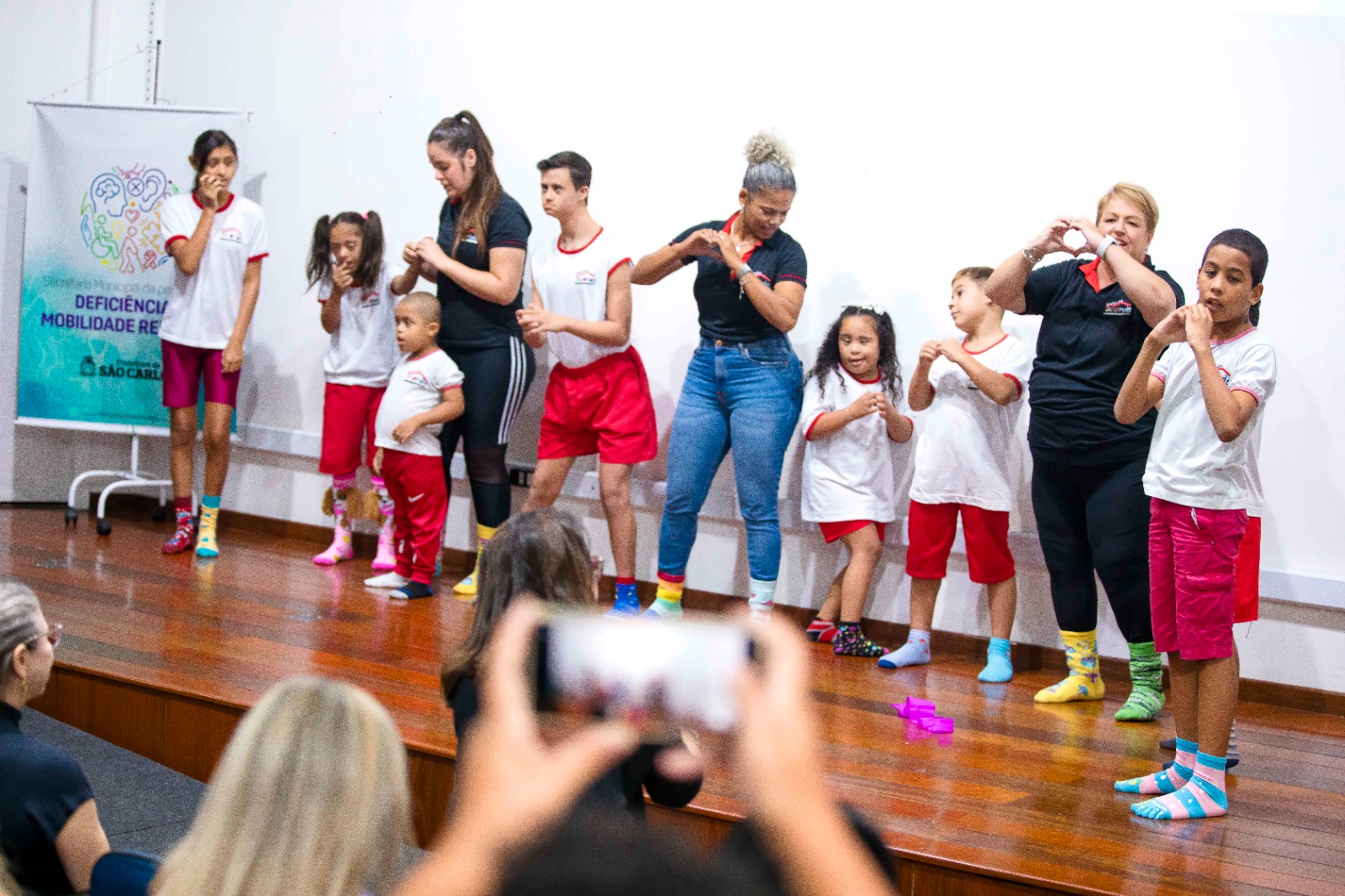 Em São Carlos, a data serviu para reforçar que “Inclusão não é favor, é direito” – como destacado em faixas pelo auditório.