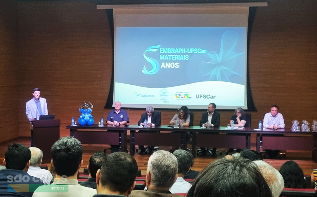 A Unidade Embrapii-UFSCar Materiais celebrou seus cinco anos de atividades com uma cerimônia realizada na Universidade Federal de São Carlos. O evento reuniu representantes da UFSCar, da Empresa Brasileira de Pesquisa e Inovação Industrial (Embrapii), pesquisadores, empresas parceiras e autoridades locais, como o assessor Rafael Arôca, que representou o prefeito Netto Donato.