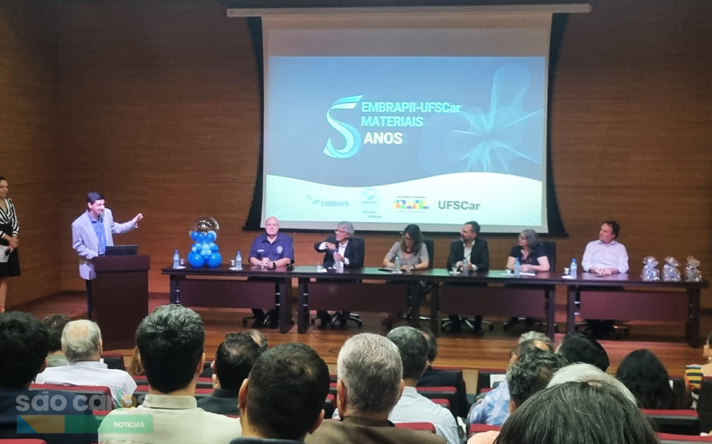 A Unidade Embrapii-UFSCar Materiais celebrou seus cinco anos de atividades com uma cerimônia realizada na Universidade Federal de São Carlos. O evento reuniu representantes da UFSCar, da Empresa Brasileira de Pesquisa e Inovação Industrial (Embrapii), pesquisadores, empresas parceiras e autoridades locais, como o assessor Rafael Arôca, que representou o prefeito Netto Donato.