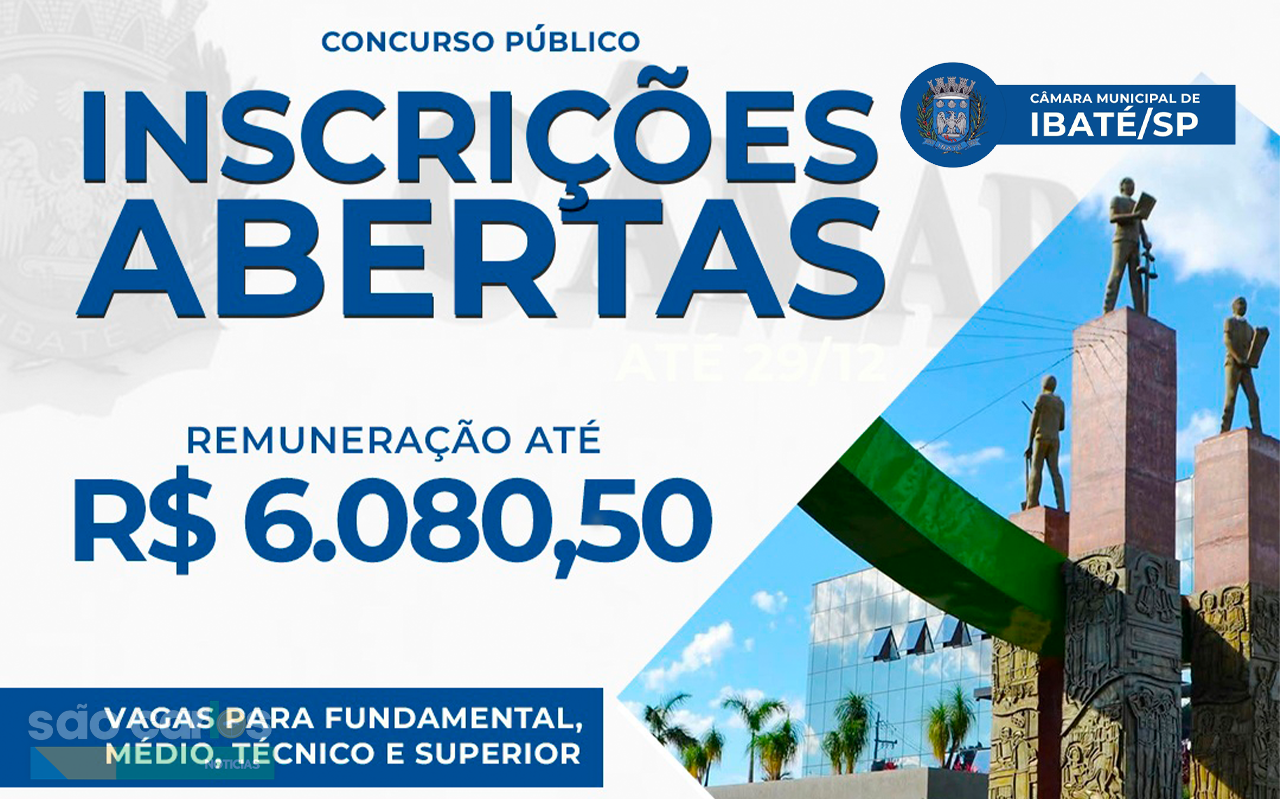 ConteúdoConcurso Público Câmara Municipal de Ibaté já está com inscrições abertas e promete movimentar a região com oportunidades para diferentes