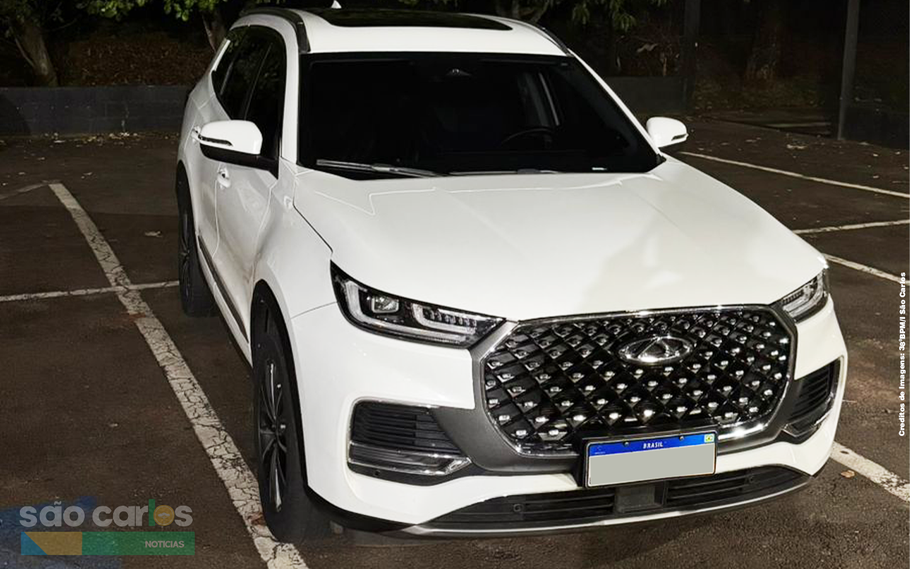 Veículo “Dublê” Ao vistoriarem o SUV Tiggo 8, os policiais descobriram um trabalho profissional de adulteração. O carro ostentava placas de outro veículo, mas após uma inspeção minuciosa no chassi, a equipe encontrou uma placa metálica sobreposta ao número original. A numeração real revelou que o carro havia sido roubado no Rio de Janeiro em janeiro de 2025.