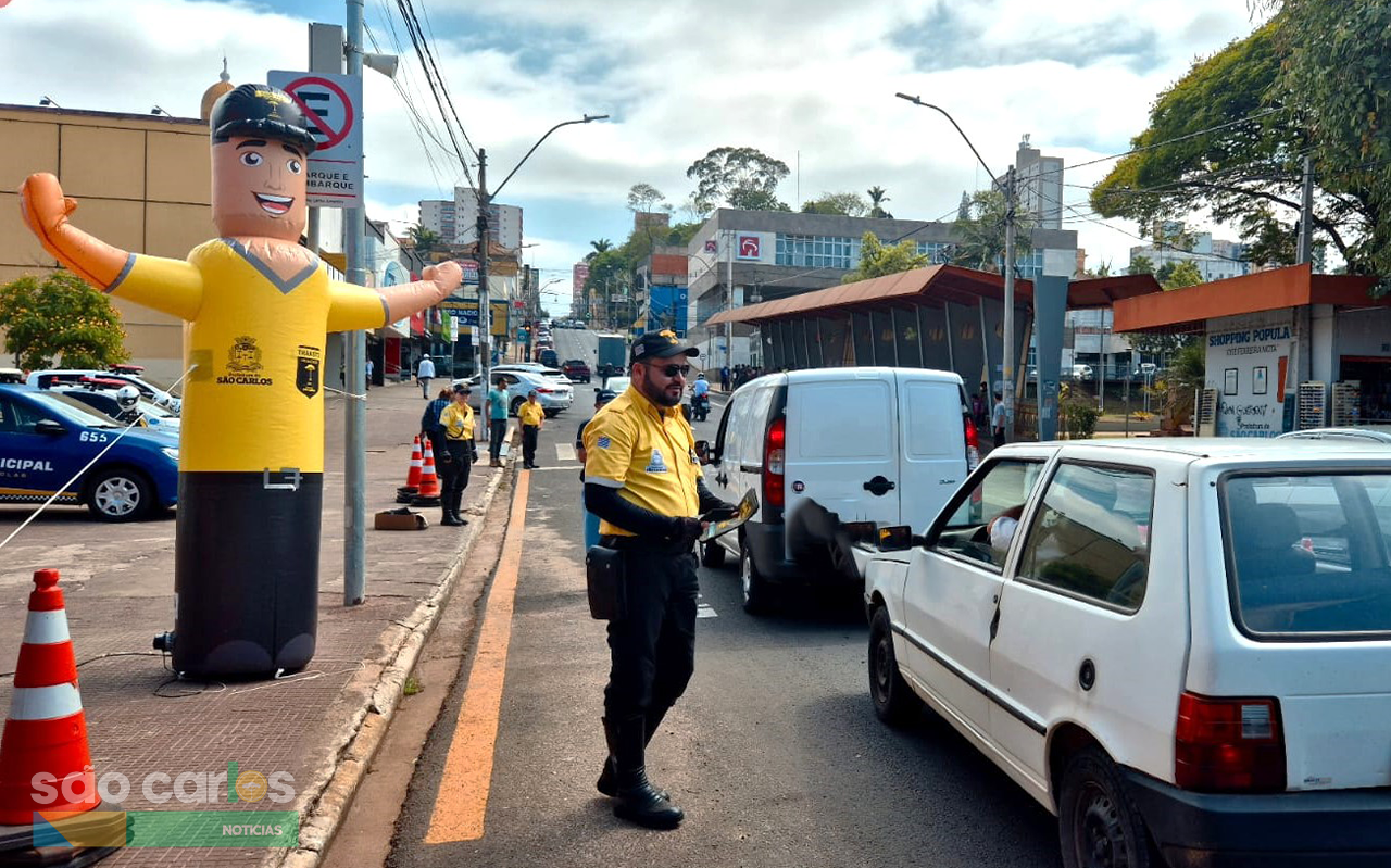 Minicidade ensina segurança viária para crianças em São Carlos com atividade lúdica promovida pela Prefeitura e agentes de trânsito no