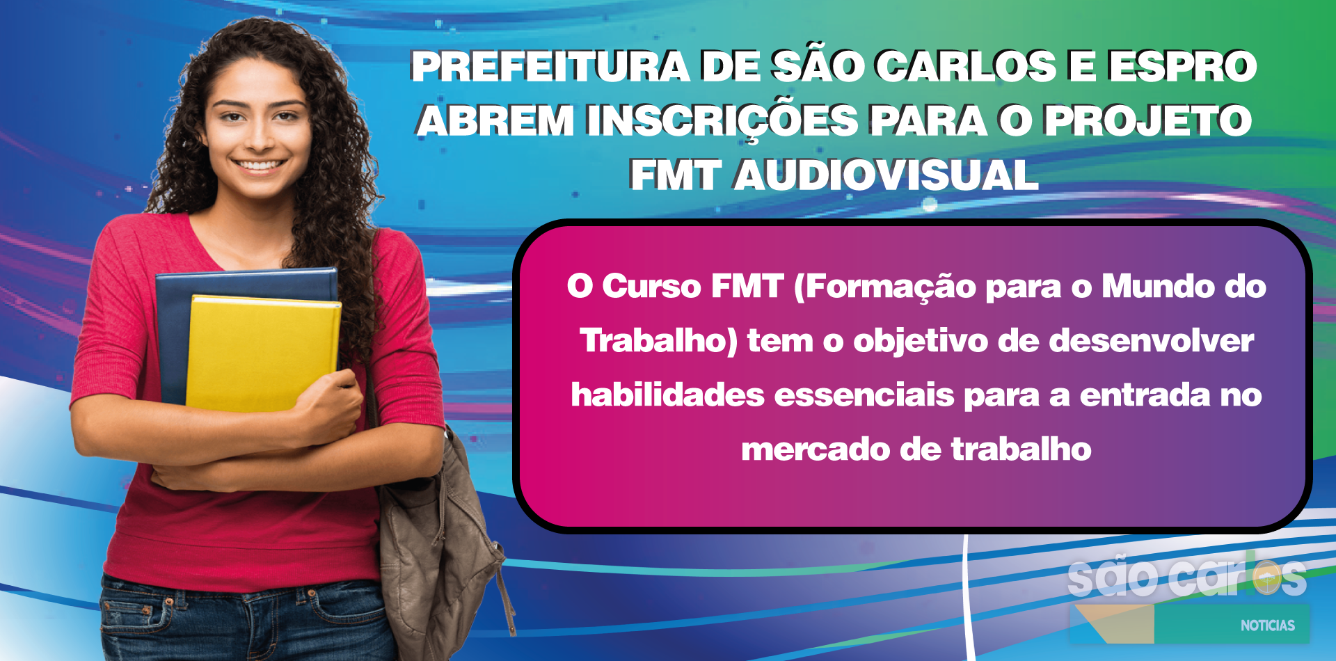 Prefeitura de São Carlos e ESPRO Abrem Inscrições para o Projeto FMT Audiovisual A Prefeitura de São Carlos, por meio