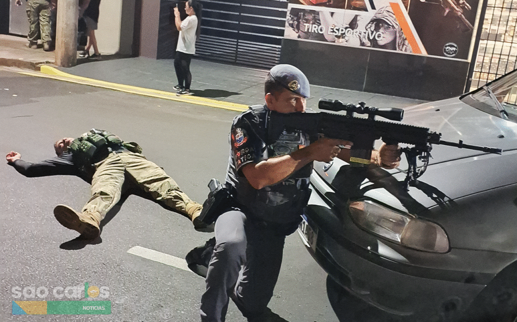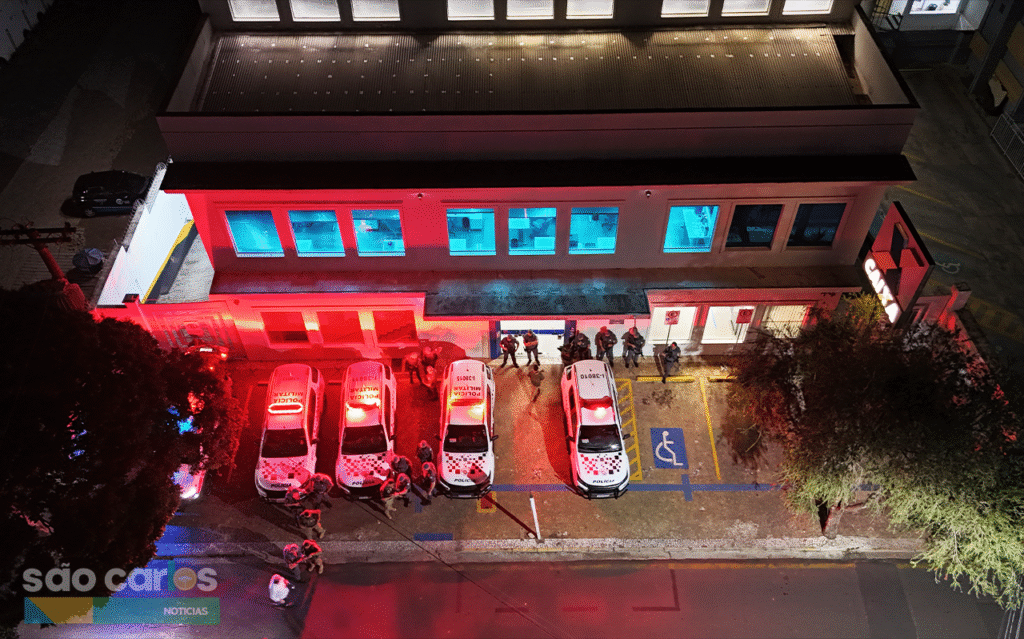 Simulado da Força Tática em São Carlos foi realizado na noite desta segunda-feira (29), às 19h, pela Polícia Militar, com foco em atendimento a crimes ultraviolentos. A ação aconteceu na Agência da Caixa Econômica Federal, localizada na Rua Conde do Pinhal, nº 2142, no Centro da cidade.