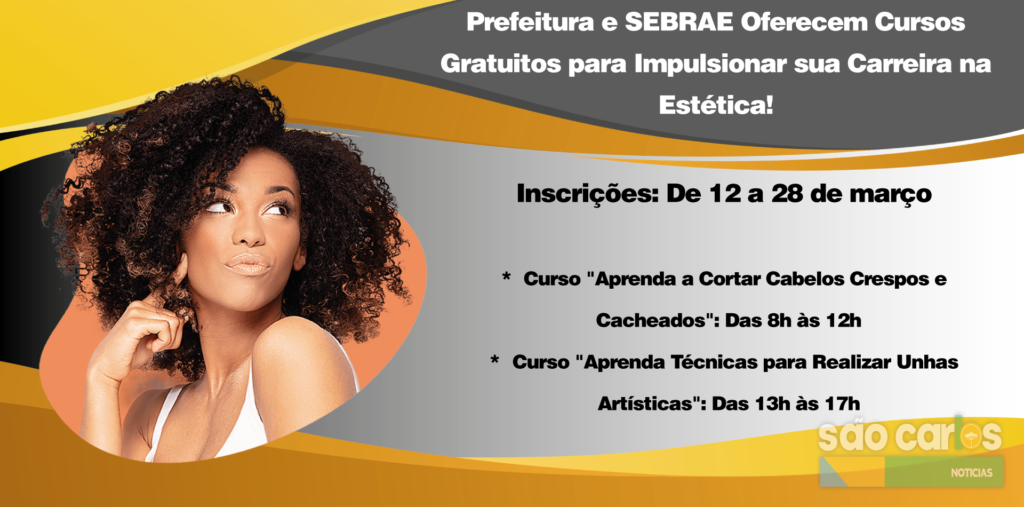 A Prefeitura de São Carlos, em parceria com o SEBRAE/SP, está com inscrições abertas para dois cursos incríveis na área de estética: “Aprenda a Cortar Cabelos Crespos e Cacheados” e “Aprenda Técnicas para Realizar Unhas Artísticas”. 🌟